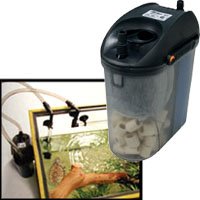 (More customer reviews)Praise the Lord! Someone has finally made a suitable turtle filter. My 6" western painted turtle has clean water because of this filter. This filter was simple to set-up, and hangs right on the side of my tank, not taking up any extra space (I purchased the filter hanger seperatly). As with any filter, you will need to replace the charcoal inserts, and they run around $3. This is a small price to pay to keep your pet's water clean. I find I need to replace them every 3-4 weeks. My turtle loves the optional spray bar (included) but it can be a pain to clean. Buy a cheap, small pipe-cleaner (or use pipe-cleaners like me)brush to get the grime off. I believe it's a small price to pay for a filter that WORKS! The small fish we have in the water as food aren't harmed by the powerful suction created near the water intake, either.