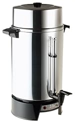 Designed for offices, churches, break rooms and cafes.Serving light indicates end of brew time, instructions printed on faceplate and interior water level markings make coffee-making easy.Twist to secure cover and heat resistant base/trim for added safety.Convenient coffee level gauge and on/off switch.