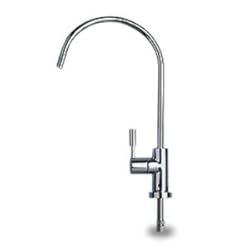 European design faucet an elegant reach LEAD-FREE water filter faucet or Reverse Osmosis faucet features a smooth quarter turn handle with a ceramic seat for a lifetime of service. A 1/2" hole is all that is needed for the faucet stud (all series), but a cover plate is included to accommodate larger pre-drilled holes. It is 11" tall and has a swivel spout with a reach of 6.25". For 1/4" tubing. Faucet color: Chrome. (NOTE: not to be used with RO systems that require an Airgap faucet this has three connections on bottom of faucet).