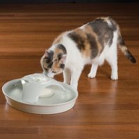 (More customer reviews)Our cats' food and water are in my work room at home and I've had a blue plastic Drinkwell roaring along in there for years (it has certainly served us well as one of our cats will only drink running water). I was so tired of cleaning the Drinkwell with all it's nooks and crannies so this one looked pretty good when I ran across it. It is really lovely, very, simple and elegant and is so, so quiet. It's like having a little zen fountain and the water stays very cool. Be warned, it is half again larger than a Drinkwell and a little heavy when full so it's difficult to carry to a sink to be emptied or cleaned without spilling a lot of water. We solved this by taking a big bowl (or you could take a small bucket) to the fountain, we pour out the water right there, then everything else is easy. This is a wonderful fountain both functionally and aesthetically. I guess most importantly, I left both fountain running next to each other for the first week, by then, this new one was the cats' fountain of choice.