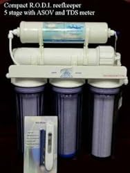 COMPACT III (5) Stage R.O.D.I.Fully featured, small size, fits under most sinks, clear filter sumps and a hand heldDigital TDS meter*The Compact is a five (5) stage RO/DI (Reverse Osmosis/De-Ionizing) Reefkeeping system equipped with a 75 GPD (Gallons Per Day) FilmTec membrane for truly great water quality and production rates. Includes: liDI Bypass liRO onlyliFast flush valve liDigital TDS meter HandheldThe Compact uses five (5) stages of filtration and purification.Stage 1) Heavy duty, standard industry size (1 Micron) Poly Pro sediment filter. Stage 2) Genuine Gem coconut carbon block acid washed* (5 Micron). Stage 3)acid washed* Gem coconut carbon block filter (1 Micron), that removes the remaining chemicals and chlorine. This filter is rated for 9,000 gallons. Used to strip any remaining chlorine/chloramines missed by stage 2. Stage 4) FilmTec TFC membrane 75 GPD (TW30-1812-75). Stage 5) One Mixed bed in-line DI cartridge 2.5 X 11" DI Bypass valveRO only valve, sample port for testing membrane output or as a source of RO water with out DI.Fast Flush valveLifetime parts and support see our home page for details.Included is our complete high quality installation hardware kit with instructions. You will have truly awesome quality water and excellent production rates. An ASOV (automatic shut off valve) & our float valve mean totally automatic top off water.Just add your Rubbermaid trash can. Reefkeeping requires the reduction / removal of chemicals, Chloramines, bacteria, virus, salts, minerals, heavy metals from