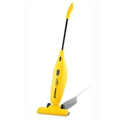 Weighing less than 4 pounds, the lightweight Eureka Easy Clean vacuum (model 166DX) easily gets into spaces where dirt lingers. A great choice for both bare floors and delicate carpets, this bagless vacuum features a dust cup (with standard filter) that quickly and easily empties without a mess. And its 2-in-1 design converts from a stick-style vacuum to a hand vac for use above the floor on upholstery, countertops and more. Other features include 2 amps of power, a 15-foot cord length, 8-1/2-inch cleaning path, and a telescoping handle. The unit measures 9 by 5-1/2 by 27 inches and is backed by a 1-year limited warranty.