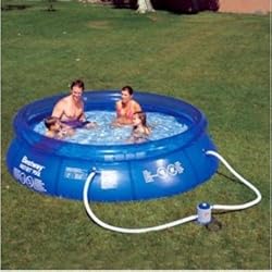 Bestway's Fast Set Pools are made for quick set up while providing you with the most cost efficient way to own an Above Ground Pool. Set up is easy, simply choose a flat surface outdoors and inflate the top ring with air and as you fill the pool with water the liner will be supported by the top ring - simple and easy. You will be ready to fill the pool with water in 15 minutes. Heavy duty PVC and polyester 3-Ply walls used throughout the pool will give you a durable swimming pool. At the end of the season draining your pool is made easy with the attached Flow Control Drain Valve. The valve can attach to your garden hose so water can be drained away from your home. Your pool comes with an 330 Gallon Filter Pump and Filter Cartridge, Heavy Duty Repair Patch and free DVD detailing pool set up and maintenance. Order today.