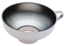 Norpro's Stainless Steel Wide Mouth Funnel belongs with all your essential cooking tools.You can probably think of a hundred ways to use a stainless steel funnel, so choose a high quality funnel that can handle them all.Norpro's Wide Mouth Funnel easily fills bottles and jars without a mess.But wait, there's more! Place any mesh strainer on top when you need to strain out larger solids. Now you can reuse cooking oil, infuse vinegar with herbs, even brew your own beer! Excellent for canning too. Safe to use in the dishwasher, but hand washing is recommended.