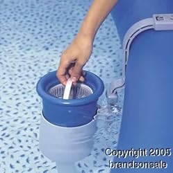 (More customer reviews)For all of those of us that purchased one of those round, bean bag looking swimming pools, with the inflated ring at the top, this is an outstanding addition to the pump/filter system that collects floating material at the surface (bugs,etc.) and spares the small paper filter the burden of collecting this material and requiring more frequent changes. This skimmer is a breeze to install and maintain. I HIGHLY reccommend this product.