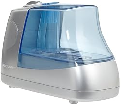 Designed for small-size rooms, this personal humidifier eliminates harsh, dry air and keeps the room at a comfortable humidity level. It uses an ultrasonic transducer to produce a visible mist, which helps relieve symptoms of dry skin, chapped lips, and sinus problems commonly associated with a dry environment. The humidifier's water tank removes easily for convenient filling and a full tank allows for up to 10 hours of operation. Other thoughtful details include an illuminated LED light for nighttime visibility and a compact size that makes it simple to transport from room to room. The UL-listed ultrasonic humidifier measures 11-2/5 by 6 by 8 inches and carries a one-year warranty.